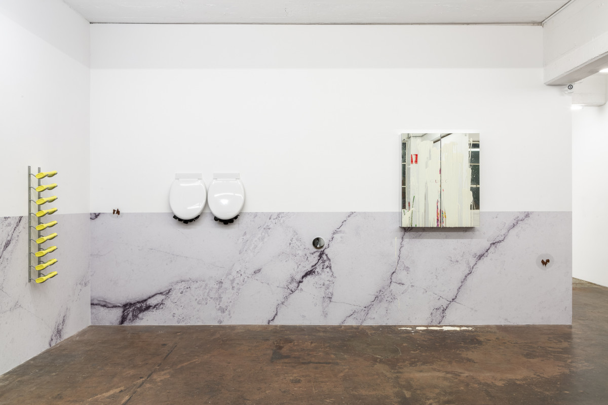 A Decadent Defecation is an exhibition of new work by David Attwood that uses the luxury bathroom as a framework for exploring ideas around commodity fetishism, wealth, and shit. Sculptural assemblages that use bathroom utilities, designer accessories and popular consumables attempt to embroil the opulent with the faecal.