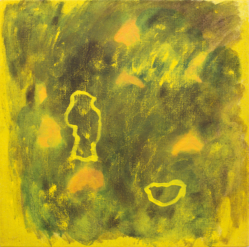 The surface of each painting become a charged space through the use of coarse linen and hessian, and are often saturated with an iconic yellow hue. What then follows is an intuitive process of applying and removing paint, pouring, rubbing and layering, all situated within a unique language of figure-ground dynamics. Through these actions, Eleanor’s canvases become diaristic sites for posing questions and receiving answers whilst generating agency through an intimate and reciprocal relationship between artist and object.