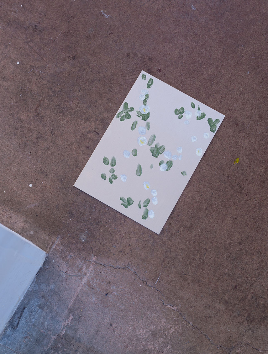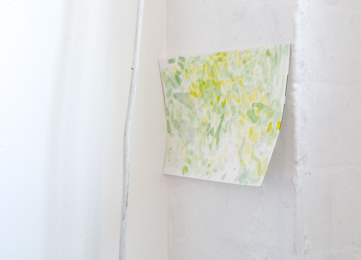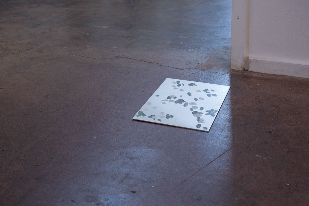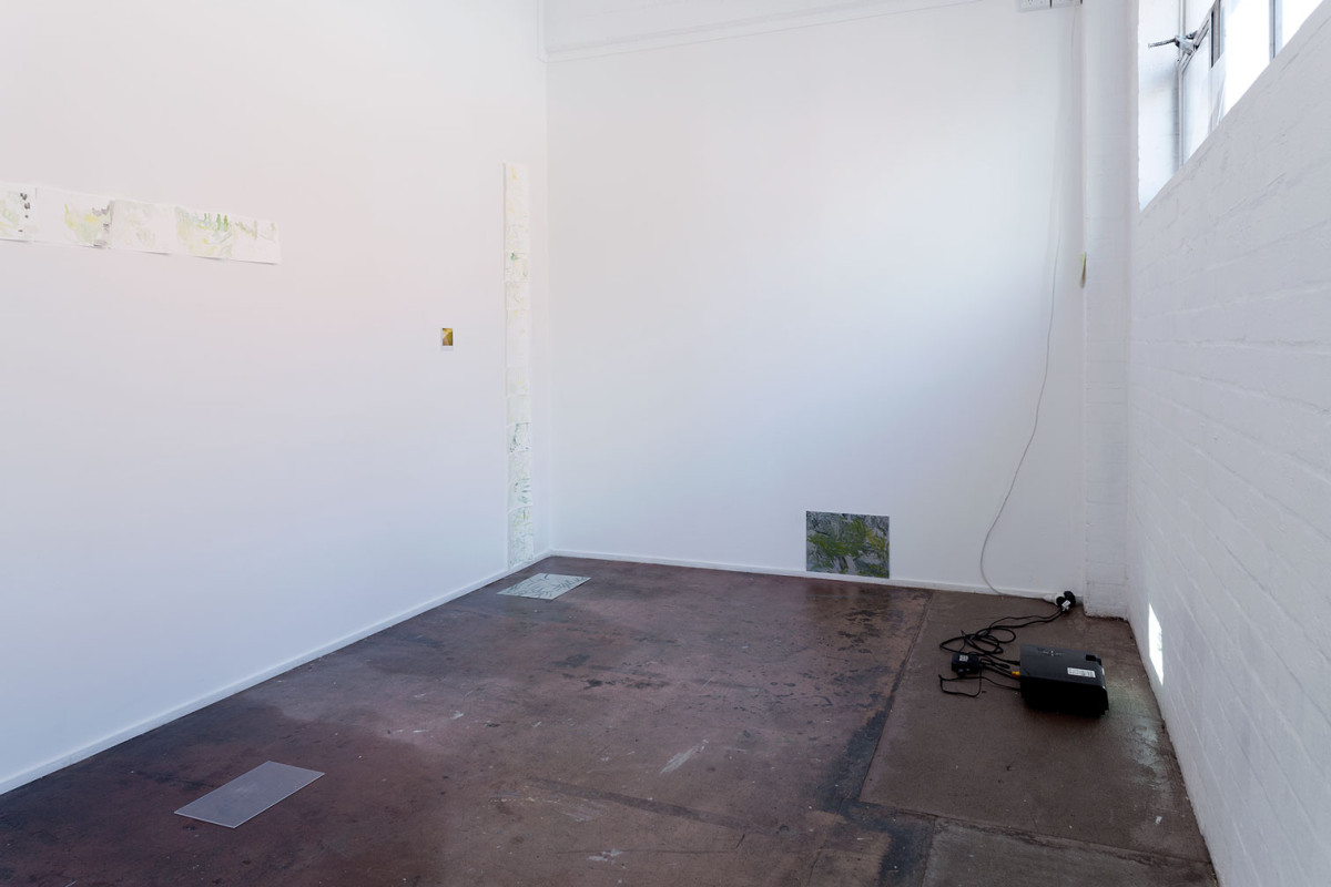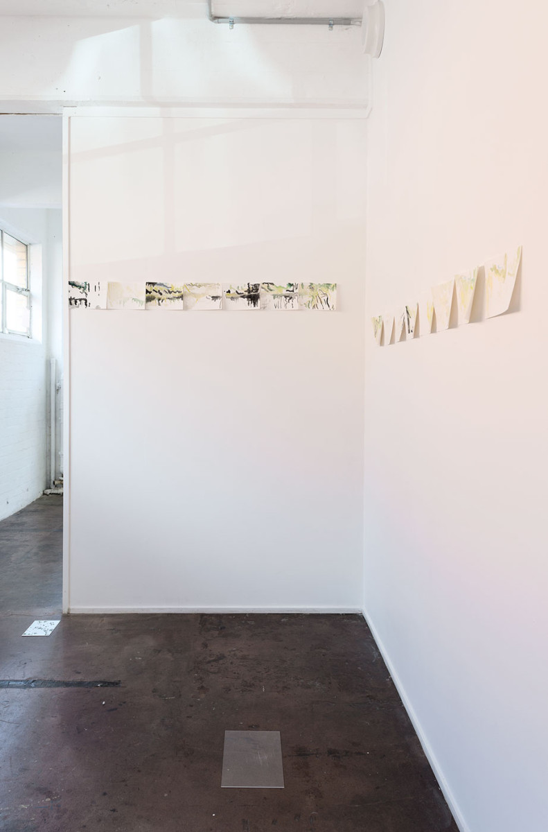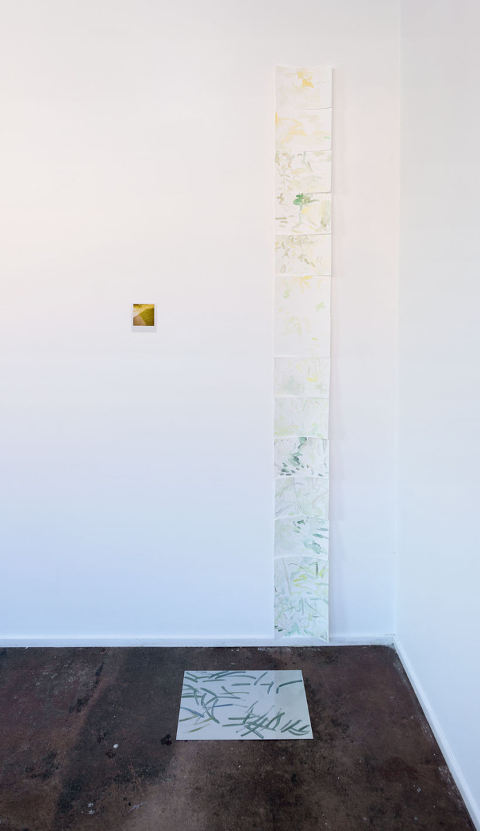 Images: Between the sky and the ground II, 2013-16, Bus Projects. Oil on aluminium with sunlight, watercolour on paper with air, digital video, Polaroid photograph, sunlight, air. Photographed by Christian Capurro