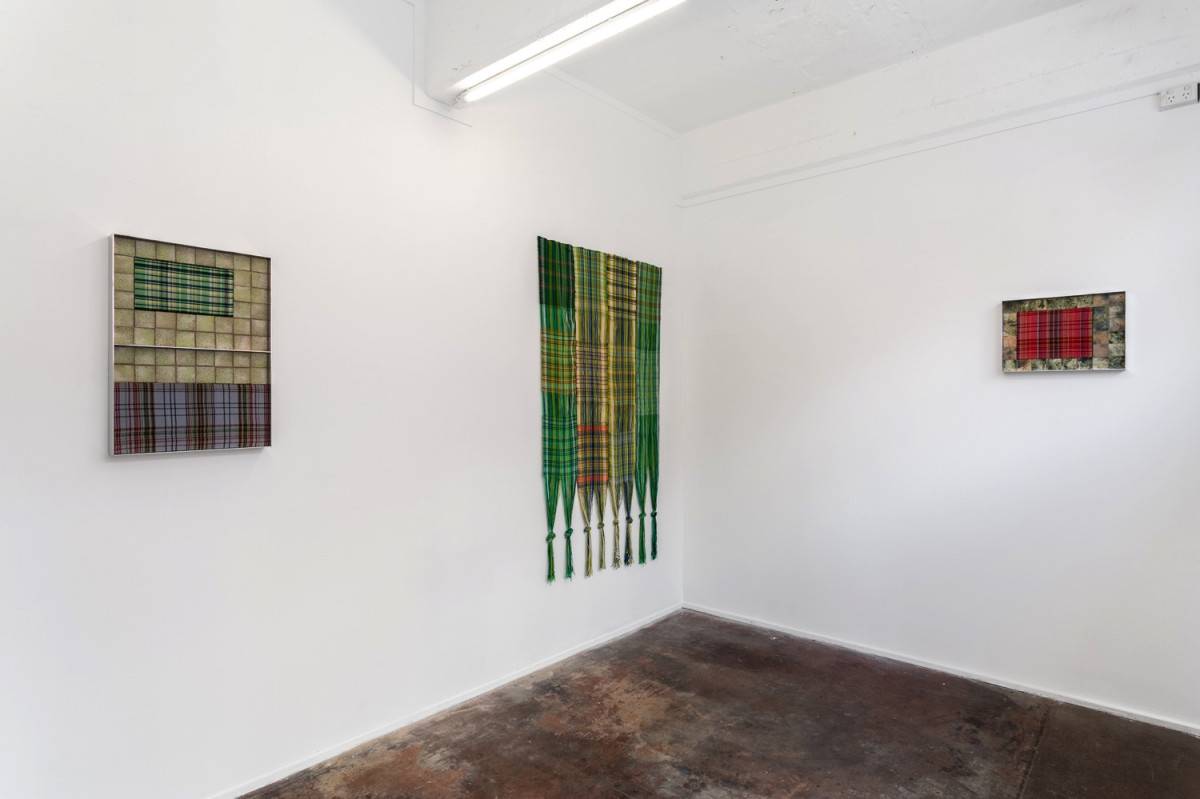 ‘Bound together, you and me’, presents Tia Ansell’s latest suite of works that are based on measuring various locations around Victoria and New Zealand. Tia transforms this information into a code-like system, which is then meticulously laboured, cut, cropped and bound to the patch-worked grid.