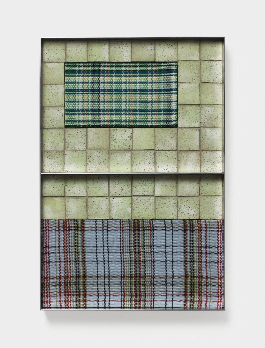 Utilising a Patchwork approach, Tia Ansell systematically measures, codifies, manipulates and unites her materials, being weaving, ceramics, paint and metal to form an assemblage. Tia’s materials are common-place objects that are often coupled together in our landscape. They speak of the now but connect us to the past, to the beginning of material culture, a network where ancient ideas are still present.