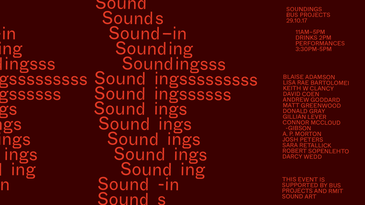 SOUNDINGS is supported by Bus Projects with catalogue design by Public Office.