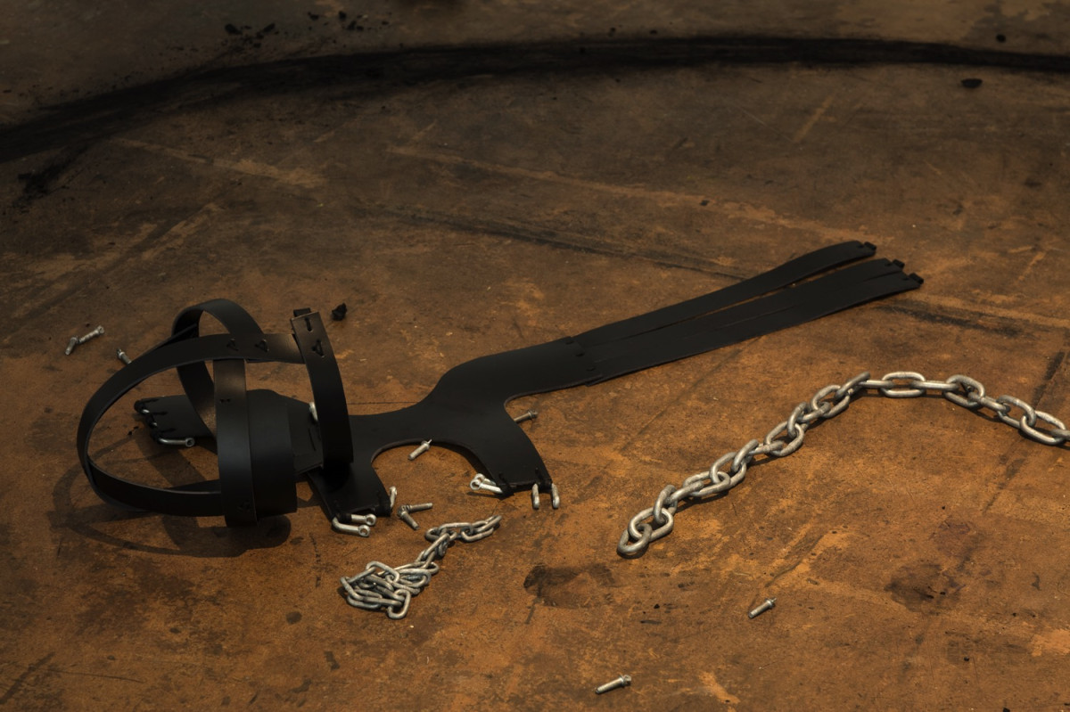 Here combining their sonic and installation practices, artists Naomi Blacklock and Anastasia Booth draw on their shared investigations into the feminine body, the archetype of the witch, and the history of these devices - utilising ritual, the body, and other materials to consider the possibilities of agency and rebellion even when the tongue has been silenced.