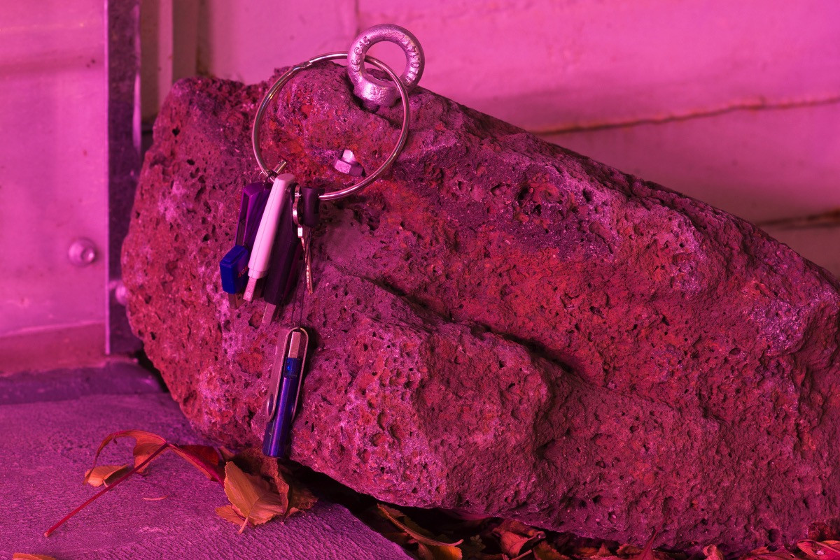 ‘lonsdale2525’ is a work by si ma va for Bus Projects ruminating on the accessibility and subsequent effectiveness an exhibitor is afforded in the act of showing. Working inside out, the gallery’s keys, archive of each exhibitor since 2001, list of contacts, contractual papers, passwords and doorstop rock are displayed as a latent offering.