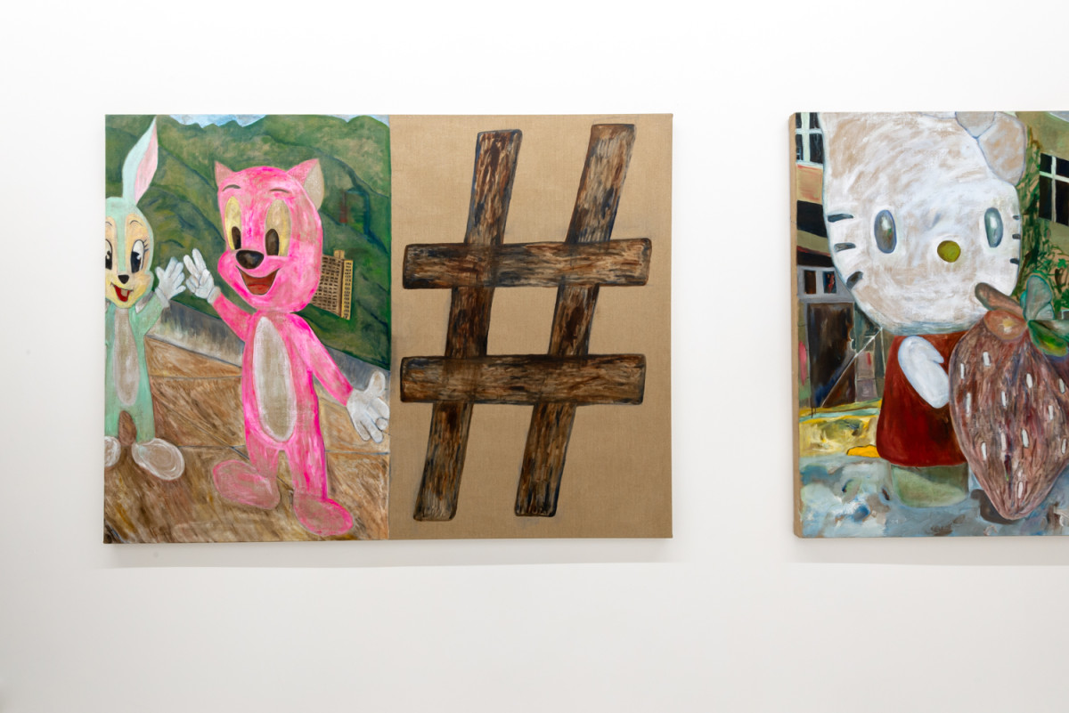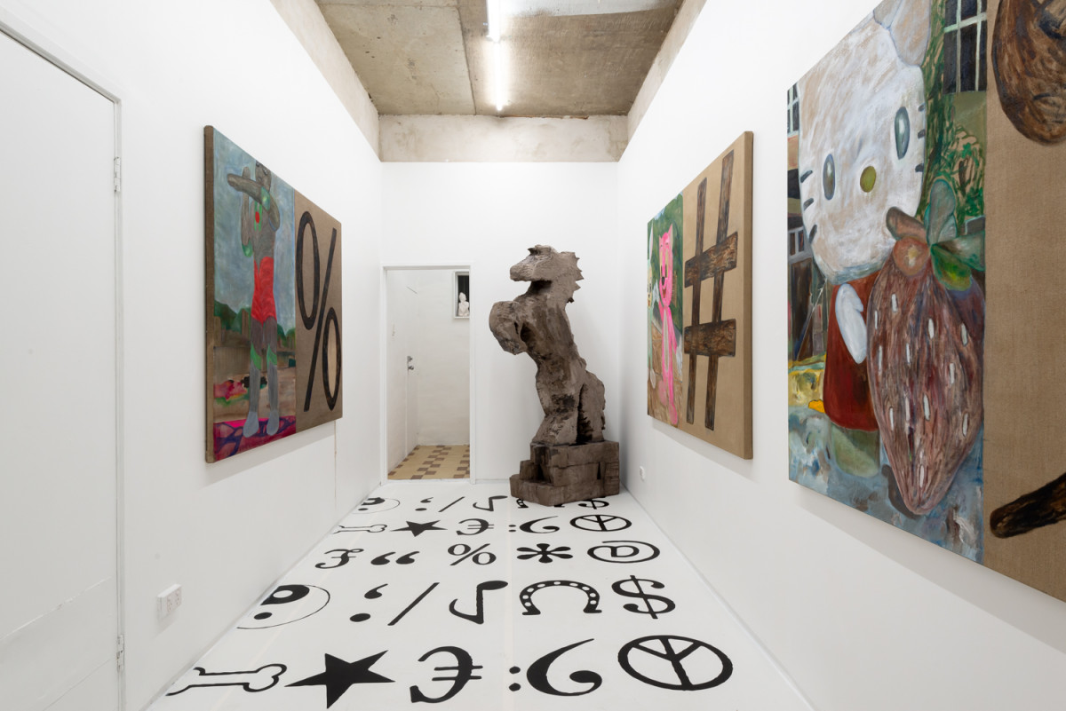 In spoken and written language, mnemonics offer memory-triggers. As a visual language, painting offers triggers that dislodge the forgotten corners of memory and that retrieve them into new associations. The act of viewing a painting involves processes where a visual field activates responses that link the recognisable to the mysterious or forgotten, the past and present, the commonplace to the profound. In this series, Hoffie combines readily recognisable symbols and forms with aspects that may appear contradictory and unrelated to weave together a new provisional narrative. Hoffie uses traditional materials and approaches to painting and juxtaposes them with sometimes half familiar forms from popular culture and other contemporary realms. Hoffie work nods towards traditional landscape painting populated by subject matter from contemporary culture that seem both eerily strange and oddly familiar.
