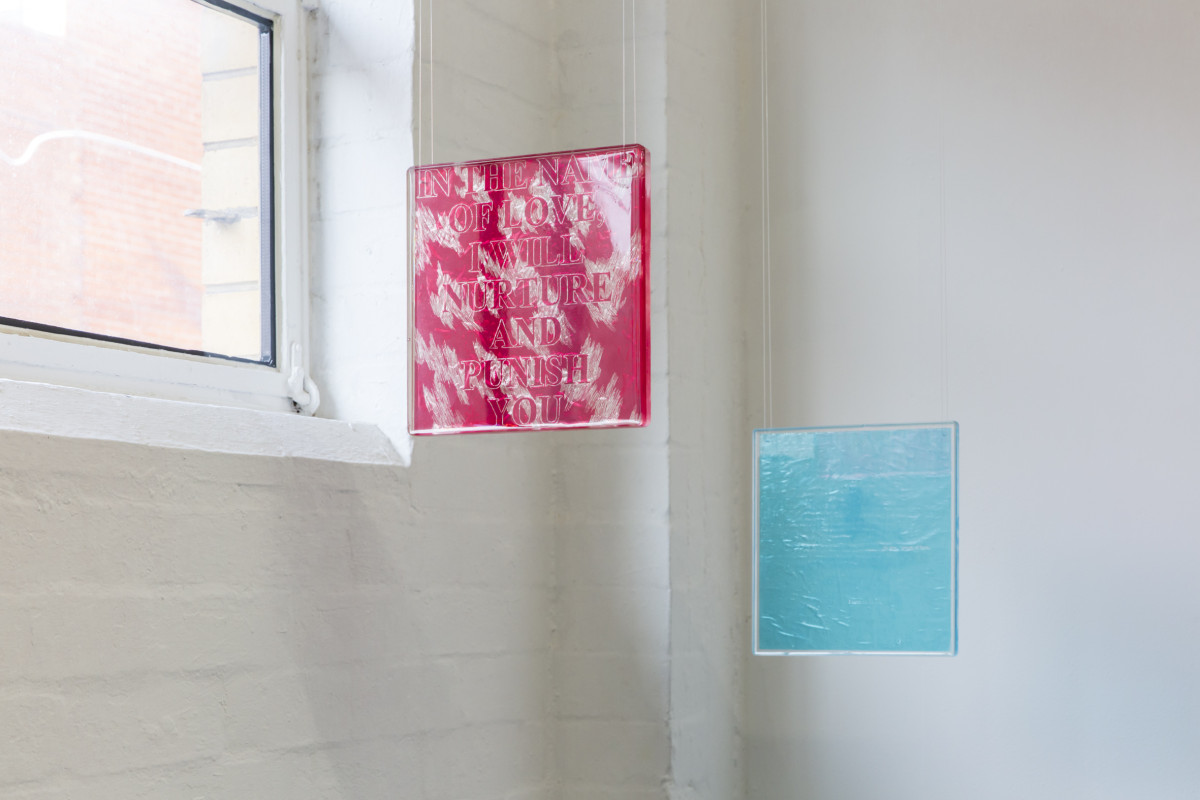 Having lived in Korea, Singapore and Australia, Ellen Yeong Gyeong Son occupies a complex cultural position as a contemporary hybrid and a culture-unspecified. She is interested in deconstructing culture, linguistic limitations and racial barriers, and investigating how these factors constantly reshape cultural identities. She utilises cellophane in her practice as a culturally filtered lens and a representation of cultural values/limitations that they may impose on individuals. The act of scratching and sewing on the surface of cellophane are Son’s metaphorical method of erasing, inscribing, layering and censoring not only the borderlines of the unique cultures that often do not intersect with one another but also the memories and experiences of these cultures that one may possess. As a result, Son hopes to create an installation of delicate cellophane banners that often illustrate neither definite nor indefinite senses of belonging to cultures. Son received Bachelor of Fine Arts (First Class Honours) in 2017 from the Victorian College of the Arts.