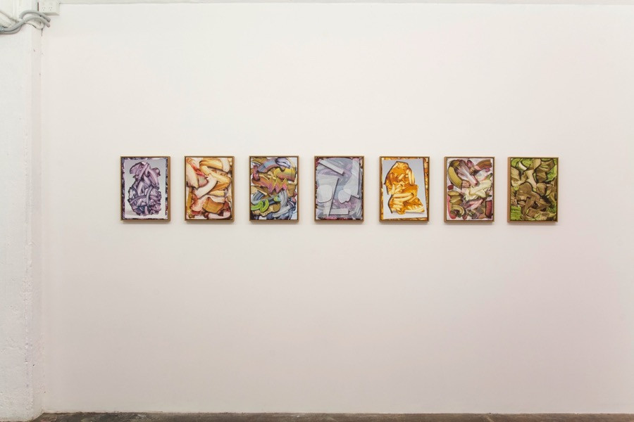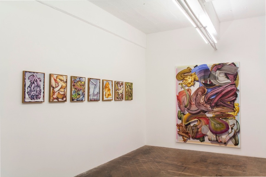 This new series continues Gregory Hodges interest in the ways illusionistic painting devices can be applied to an abstract picture space. By adapting and translating historically associated techniques, such as illusionistic trompe l’oeil, into a contemporary idiom he considers how these affect the ways we experience and interpret abstract paintings. Consisting small scale and large paintings on canvas this exhibition considers the oscillating relationship between the eye and the body, illusion and materiality, stasis and motion, flatness and spatiality.