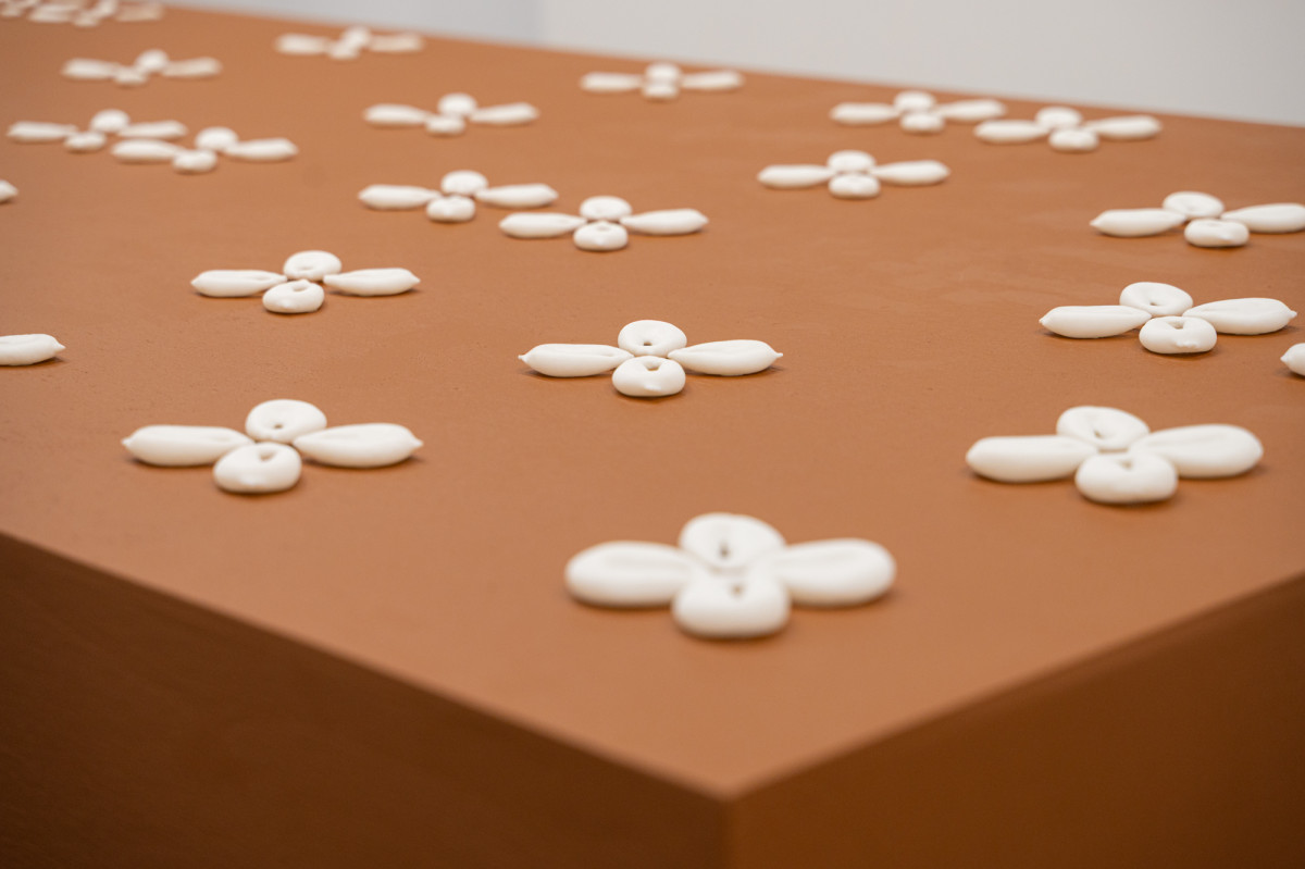 Shells are immediate signifiers of the ocean, in this case the Great Ocean (otherwise known as Oceania, colonially termed the Pacific Ocean), which spans over a third of the world’s surface and is home to extraordinarily diverse Indigenous cultures with continuous histories spanning thousands of years. A mass-produced plastic version of a shell gestures toward its living counterpart, but carries connotations of geographic displacement, cultural appropriation and ecocide. Only under the guardianship of tagata with ancestral and cultural ties can these faux pule regain authentic connection to their origin.