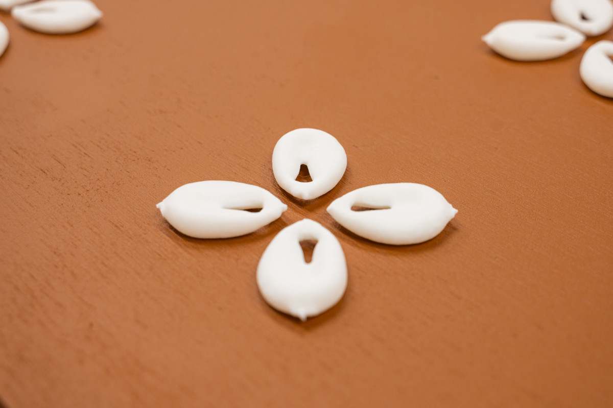 ‘Pule’ (pronounced like ‘bull-eh’) is a word in gagana Sāmoa that can be understood in English as ‘cowrie shell’, ‘power’, or ‘authority’. This work critiques the documentation of culture through Western science (anthropology) and technology (the camera). A cowrie shell bead, repeatedly 3D scanned and reprinted, demonstrates the degradation inherent in Western archival methods, even with supposedly cutting-edge, ‘objective’ technology. Referencing Samoan cultural signifiers while parodying scientific display, this exhibition explores the misrepresentation inevitable in outsider interference, the internalisation of colonial perception and the reclamation of culture.