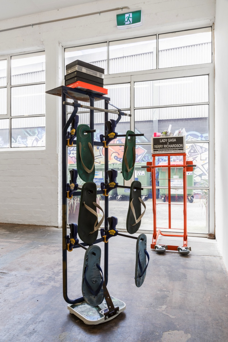 Each of the pieces (containers) in the exhibition use a certain tool as plinth, such as scales and hand trolleys, referencing devices that aid in the movement or comprehension of objects. These items demonstrate their own ‘readiness’ to be transported, inherently mobile by design.
