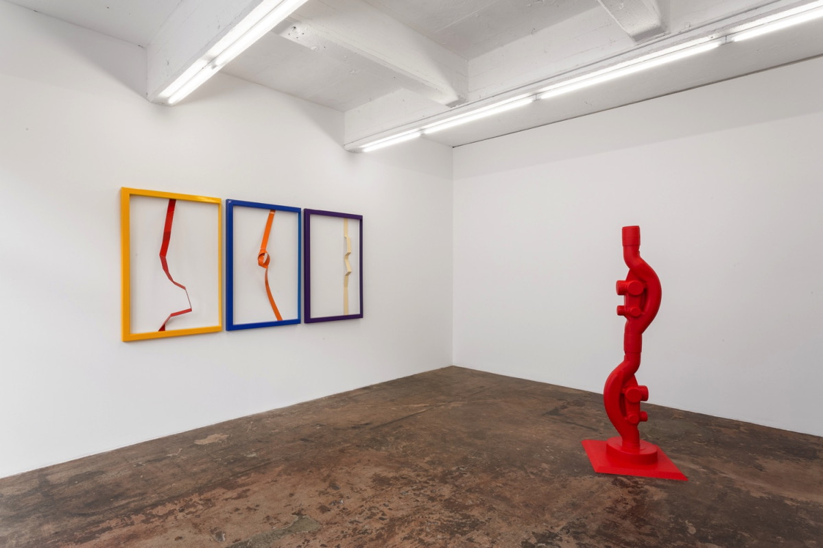 Interested in the break down of formats, Papoutsidis removes the typical settings of the image and structural language that surrounds viewing an image, using an exploration into the theoretical language of painting and the functionality and realities of material driven construction. Materials are objects of obsession, using intuitive motions, sparked by genres such as finish fetish applications and the post-minimal. Through this, Papoutsidis aims to explore the theatre of painting through structural vision and spatial abstraction and create new scenarios of formalist assembly.