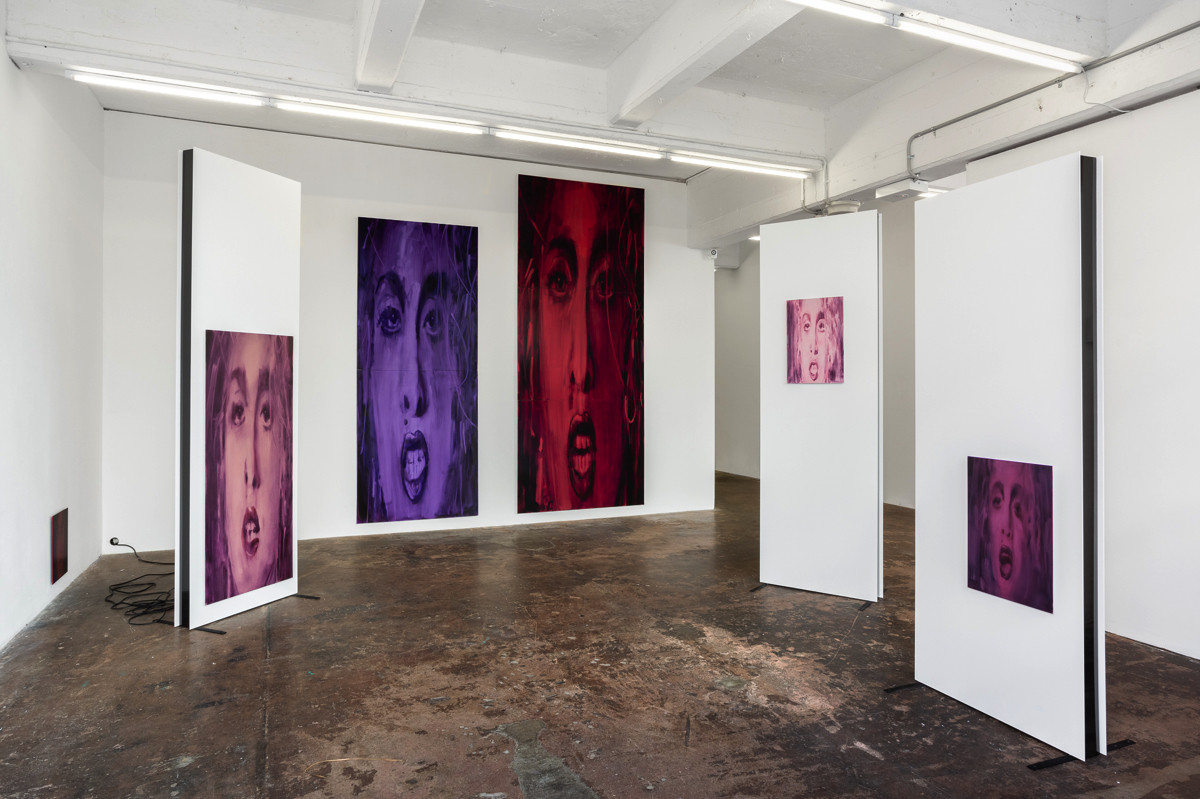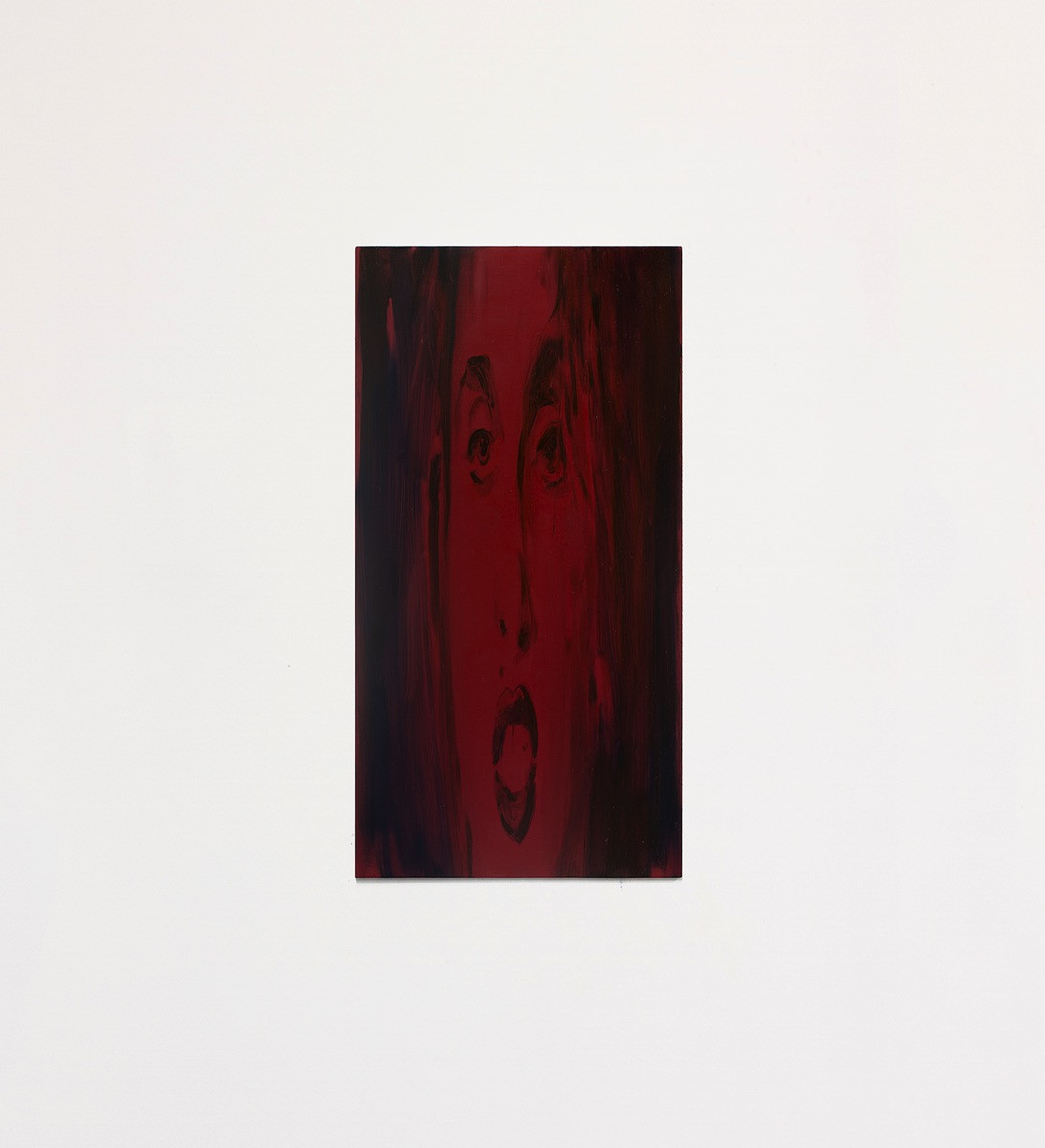 His latest body of work Slow Rise / Burning Up made for the Bus exhibition is driven by a curiosity about how digital images change the way artists make paintings, and also how we look at them. Lovett is interested in placing a set of formal constraints around portraiture in the context of how we consume images. In this body of work he has focussed on a very well-known face and skewed a familiar scale for portraiture. Through repetition of this face-in-action, the series fixes on micro-expressions that reveal a performance within a performance: the slight curl of a lip, the tilt of a head and the angle of a cheek. Within each frame Lovett has honed in on distortion as a driving force in order to deliberately think about how we are all compulsively scrolling all the time, through images, tabs, playlists and feeds.
