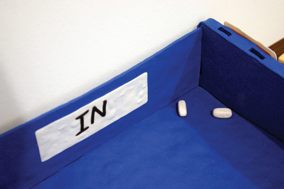 It helps me to think of my work as language, each object a part of a sentence, interacting syntactically with its neighbours. Still-life is like this, a basic structure of modular parts, forming something that can be read as complete through its unthreatening conventionality. This installation represents its own making; it’s a necessarily reductive attempt to represent action and cognition through objects and images.
