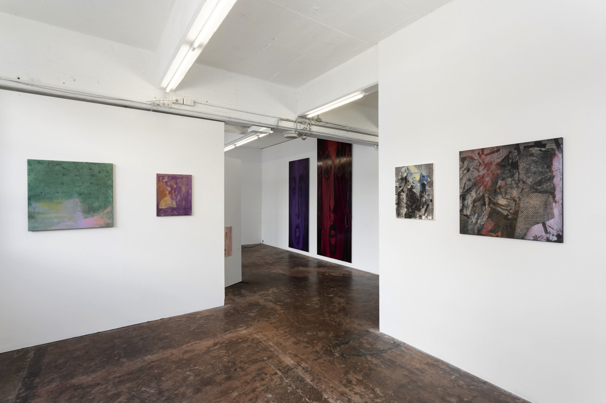 The paintings in The Grave Material explore surface exaggeration and vitality of the Baroque. Combining handmade, analogue, mechanical and digital techniques, individual canvases are layered with screen-printed, drawn and hand painted textures. The forms in these artworks are derived from both sourced and created imagery, usually depicting garbage. These have then been mutated through a combination of pencil drawing and digital editing prior to being painted and printed. The final paintings are on the edge of representation and abstraction. Designed to draw focus to their complicated and heavily laboured surfaces, these are excessive, exaggerated and difficult for viewers to visually decipher.
