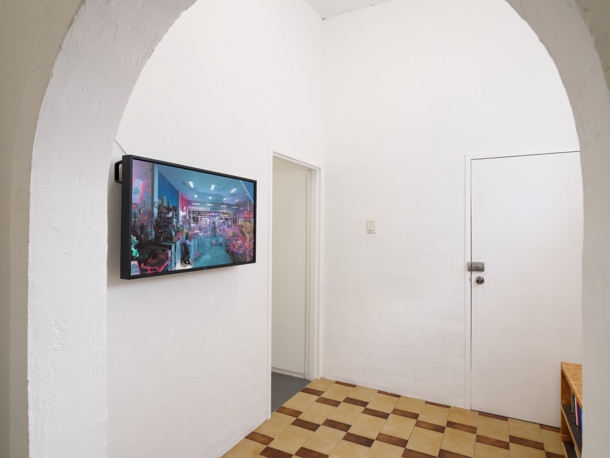 Roland Barthes famously wrote that “the nature of a photograph is not to represent but to memorialise.” What is the nature of a LiDAR scan? Multitudes, probably. We can only vaguely speculate on future uses of this technology. Farro’s scans of Vice and Brunswick offer one vision. The works are a perversion of the LiDAR scanner’s primary purpose—to replicate the exact spatial dimensions of an area. Instead, his practice is a memorialisation of peripheral suburban mundanity, one that runs in opposition to common uses of the technology, such as documenting a building site or a ruin of Great Historical Significance. In those scans, human presence is rendered important only in absence, in the service of the towering, depersonalised achievements of built longevity. In Terrestrial Landscapes, human presence is centred. The stills mutate against precision. Farro could remove the glitched figures with a tool designed exactly for that; he doesn’t. He could smooth over the warped negative spaces; he doesn’t. By fucking it up, or rather refusing to enact the illusory process of unfucking it up, Farro refutes the idea of technology as a tool of objective capture. Questions of accuracy are superseded by questions of epistemology.